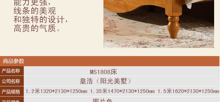 全实木床纯实木美式乡村家具美式1.5米1.35米1.2米床皇浩家具阳光美墅MS1808