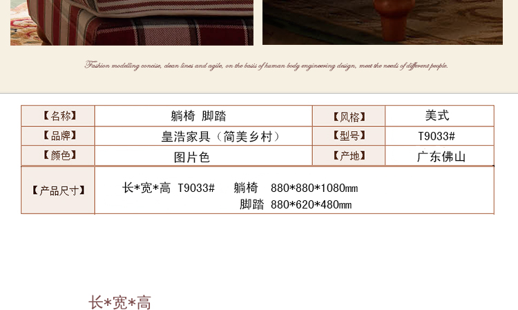 皇浩家具新款美式客厅书房躺椅休闲椅单人沙发T9033#躺椅