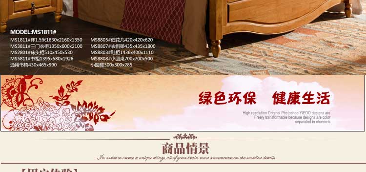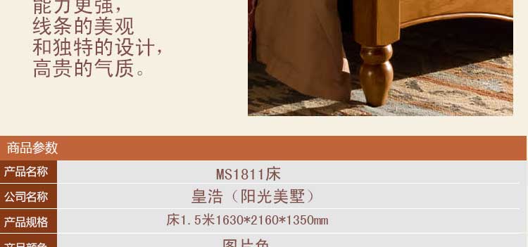美式实木床双人床1.5美式乡村床实木床家具皇浩家具阳光美墅MS1811