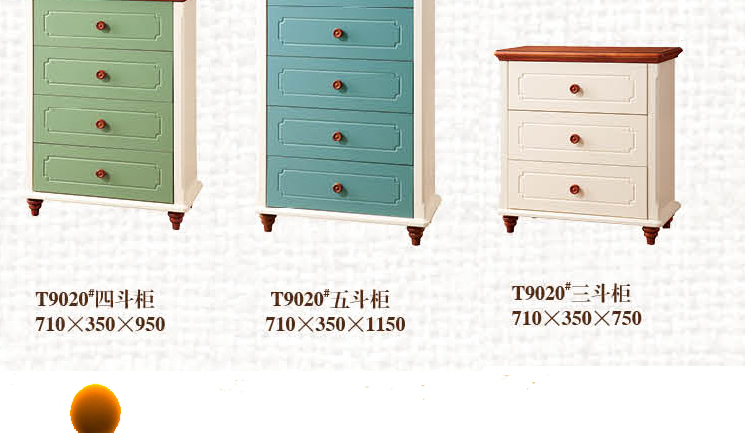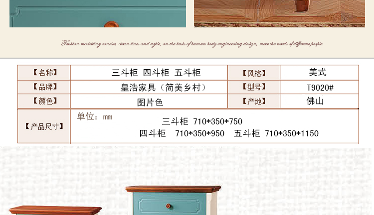 外围尺寸:三斗柜 710*350*750 四斗柜 710*350*950 五斗柜 710*350*1150