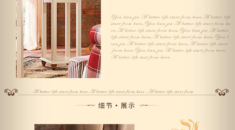 秉承灵感无限的美学创意思想,将艺术和传统文化融入家具设计,每一个细节都表现出家具的品味和自我的风格,折射出家具的文化和强烈个性。朴实简洁不华丽,没有繁多琐碎的花式设计,打造一个时尚完美的家。