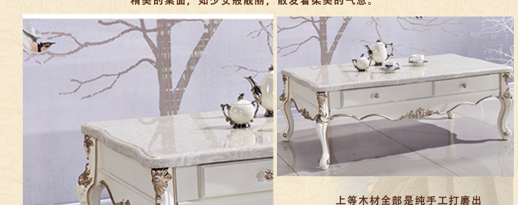 美林印象 欧式精美象牙白实木雕刻上等材料自带储藏抽屉长几f302