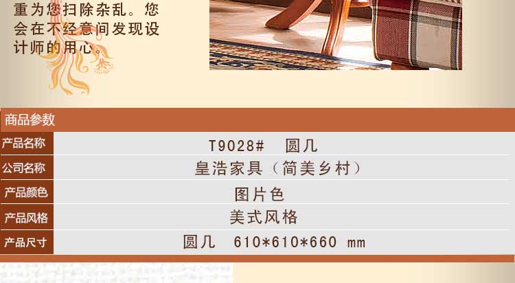皇浩家具客厅休闲桌边几圆几简美乡村风格T9028#圆几