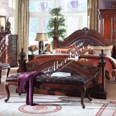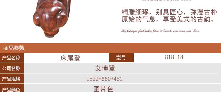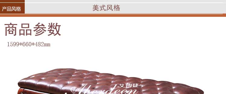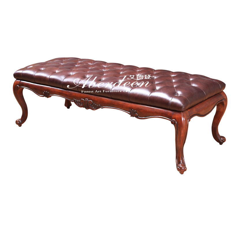 艾博登 美式乡村实木床尾凳 真皮沙发凳换鞋凳 卧室长凳床前凳 818-18