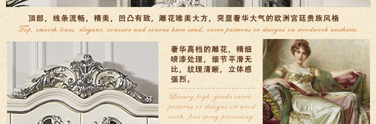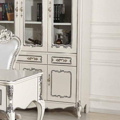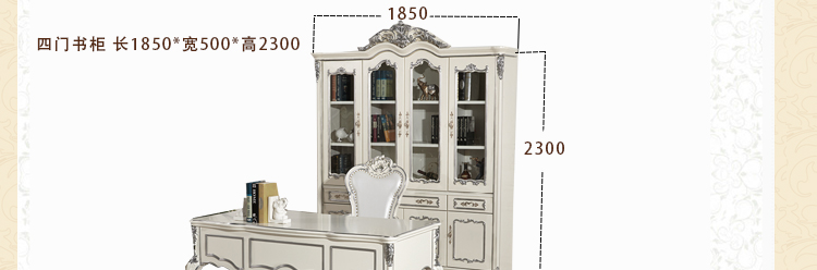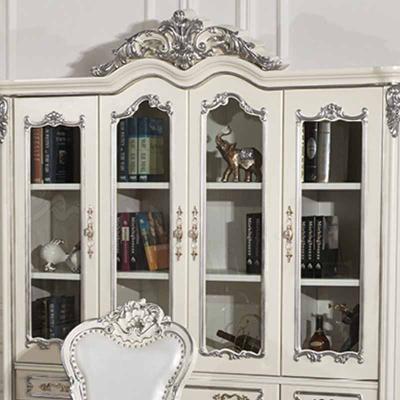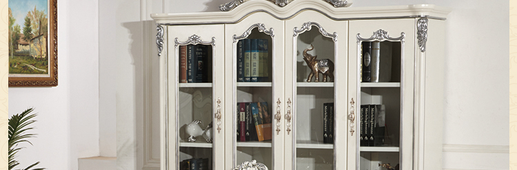 美林印象 欧式描银实木雕花环保烤漆4个玻璃门书柜f501