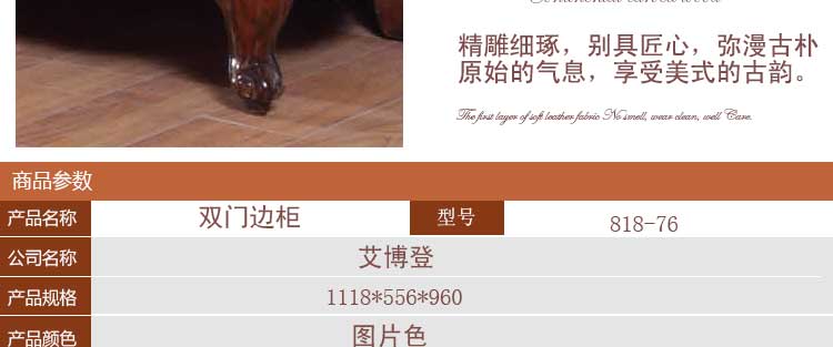 艾博登 实木酒柜 美式酒柜 双门酒柜装饰柜 古典深色家具 储物柜 818-76