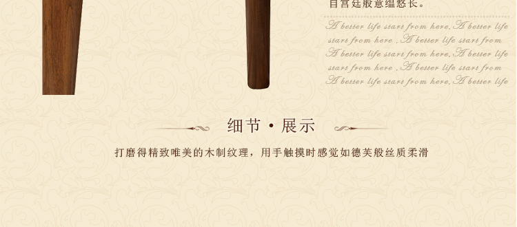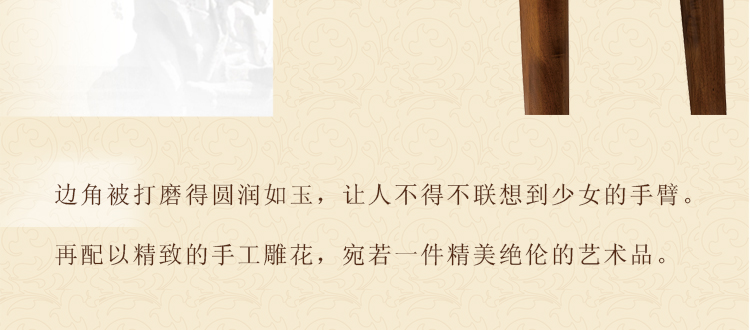 材质上的精挑细选,工艺上的尽善尽美,回归自然,崇尚原木韵味,外加现代、实用、精美的设计风格,反映出现代都市人进入后现代社会的另一种思考方向。