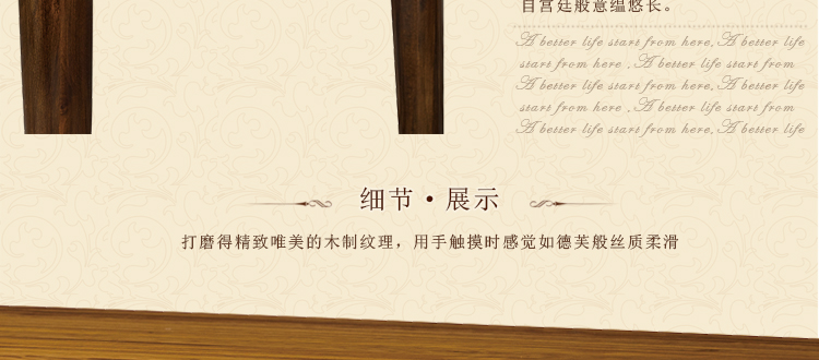 材质上的精挑细选,工艺上的尽善尽美,回归自然,崇尚原木韵味,外加现代、实用、精美的设计风格,反映出现代都市人进入后现代社会的另一种思考方向。
