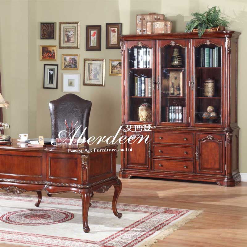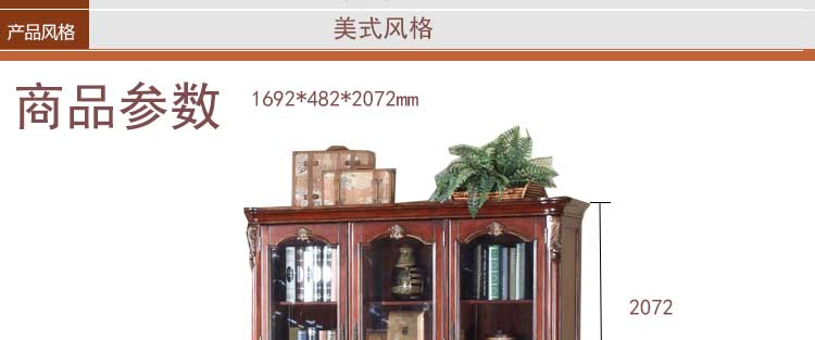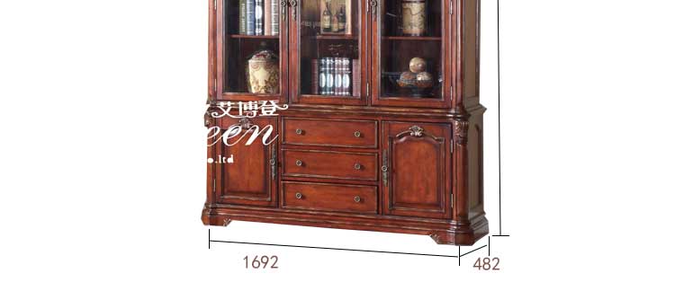 艾博登 实木书柜 柜子置物柜美式书柜玻璃门 美式书柜 818-13