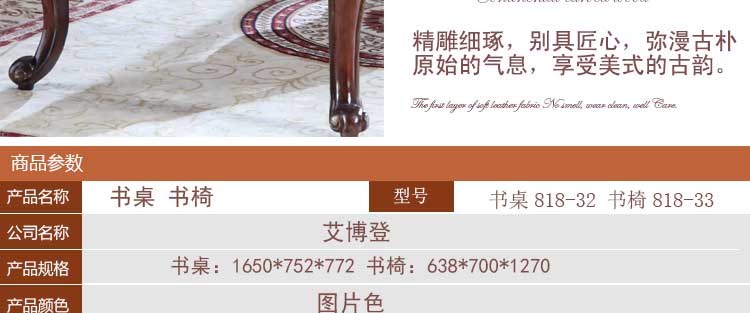 艾博登 美式书桌 美式书台 书房写字桌书台高档台式电脑桌 818-32