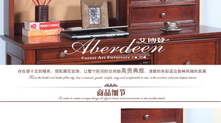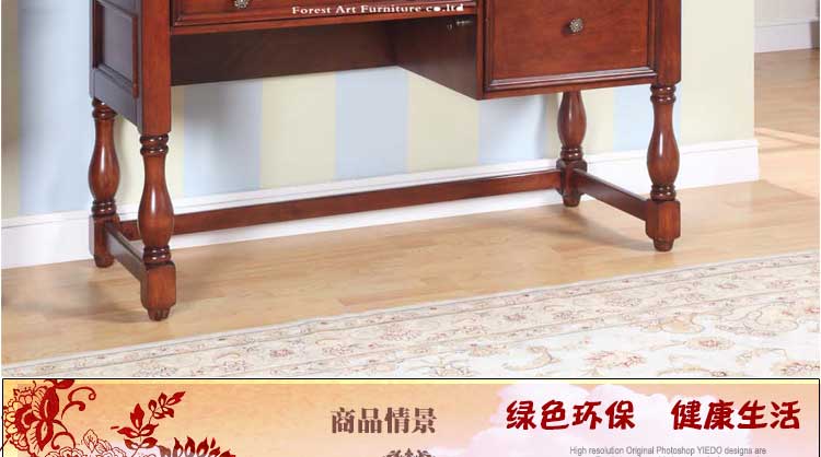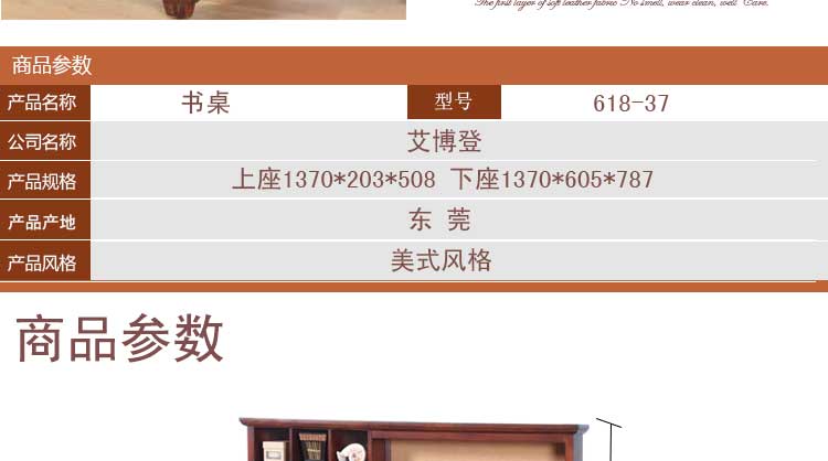 艾博登 美式书桌 书房写字桌书台高档台式电脑桌 学生桌618-37