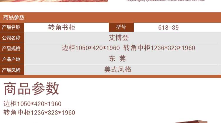 艾博登 美式现代简约乡村风格书柜拐角连体书柜 618-39