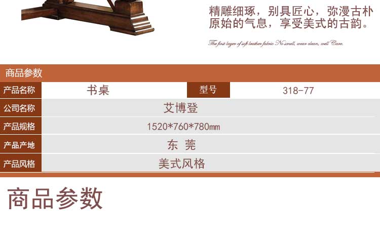 书房书桌美式实木书桌新款书台厂家直销艾博登318-77