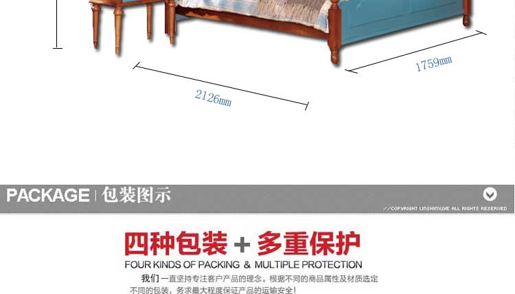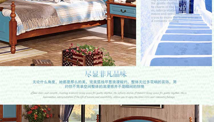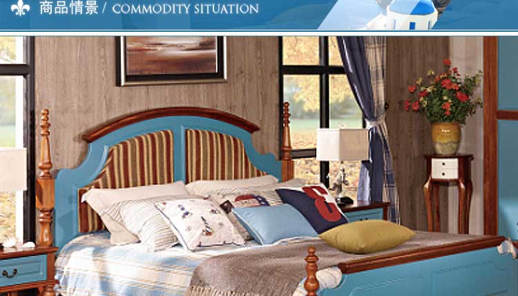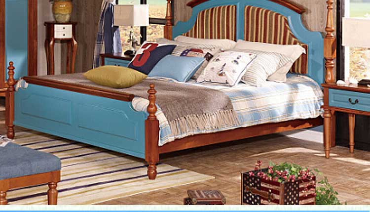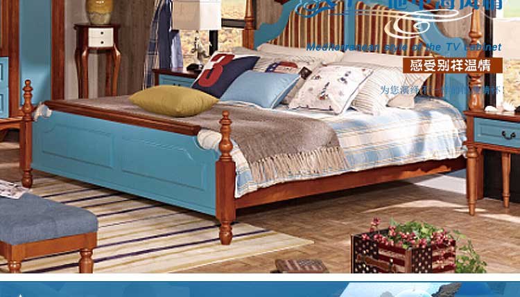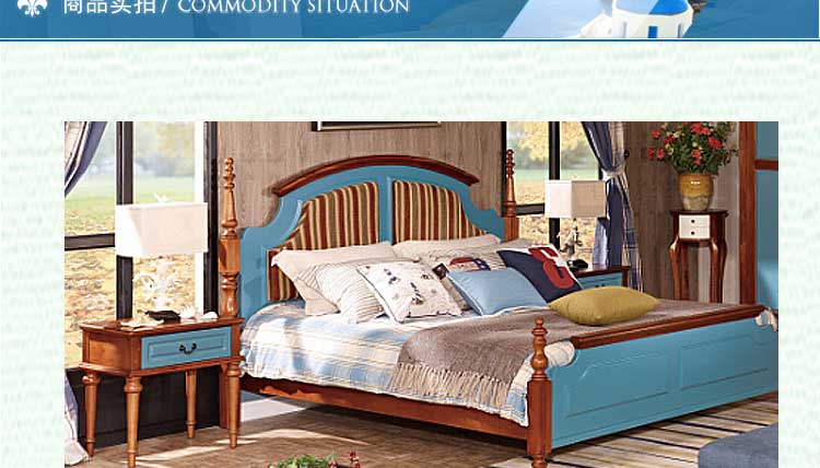 欧木轩 实木床 1.8双人婚床1.5高箱床美式地中海简约卧室家具8A001