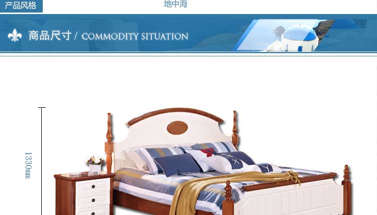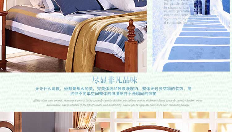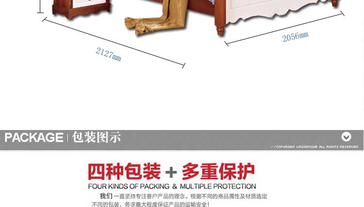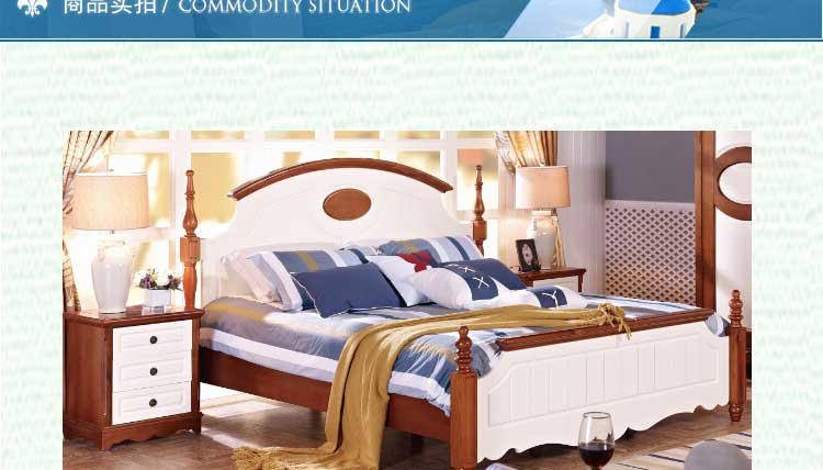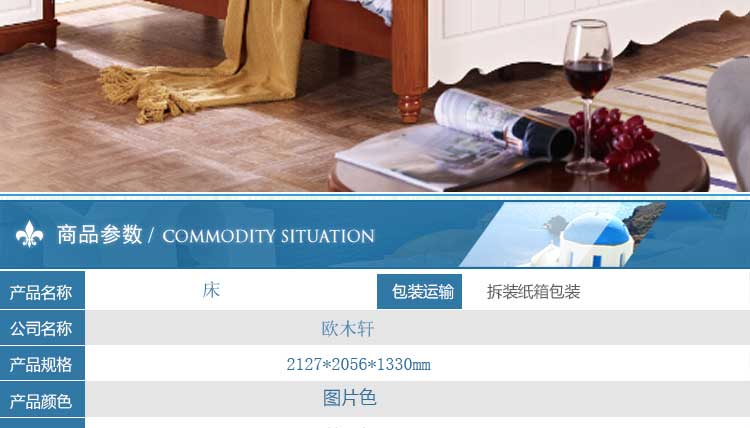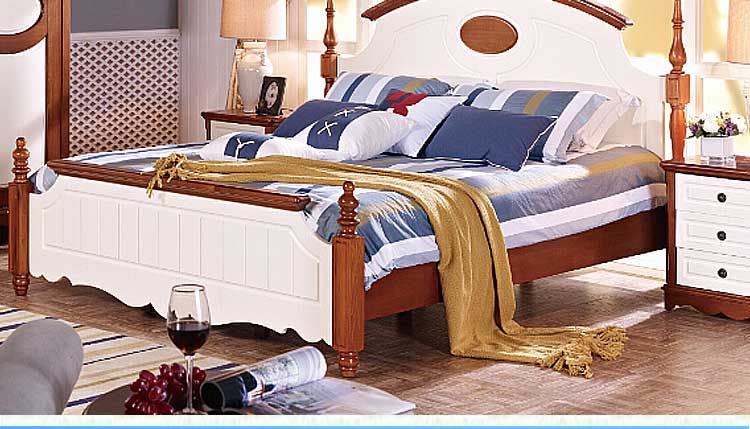 欧木轩美式乡村实木框架床 简约卧室床双人床 1.5米1.8米8A002