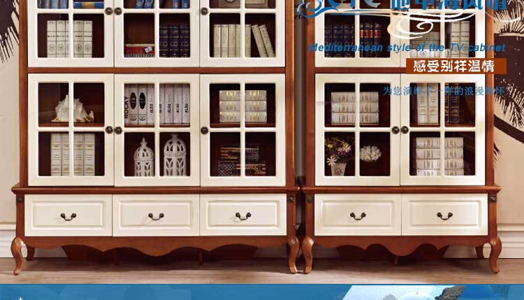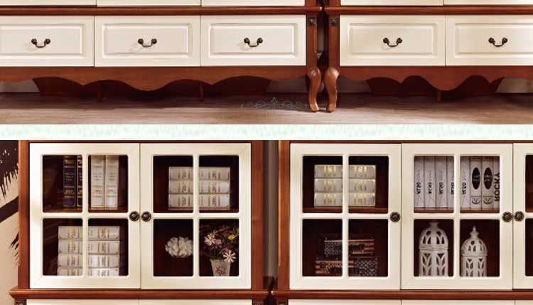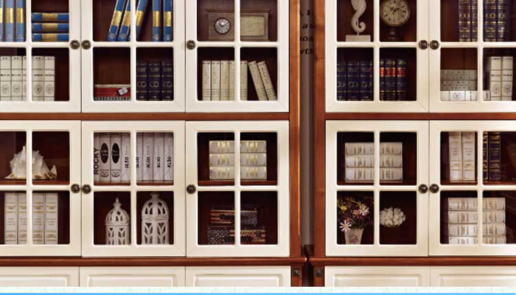欧木轩全实木书柜书房家具二门三门带玻璃门抽屉书柜书橱8GC01
