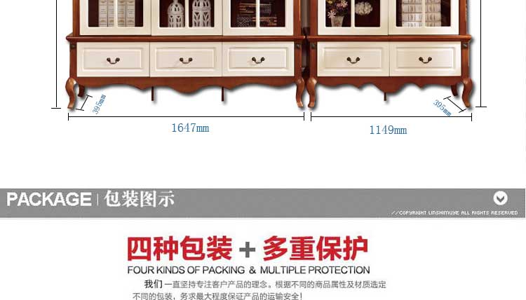 尺寸:双门书柜:1149*395*1895mm; 三门书柜:1647*395*1895mm