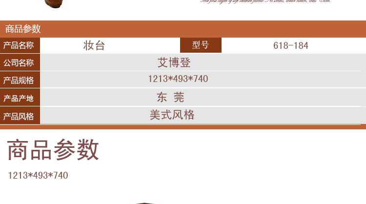 艾博登 美式梳妆台 美式实木化妆台 小户型深色妆台 618-184