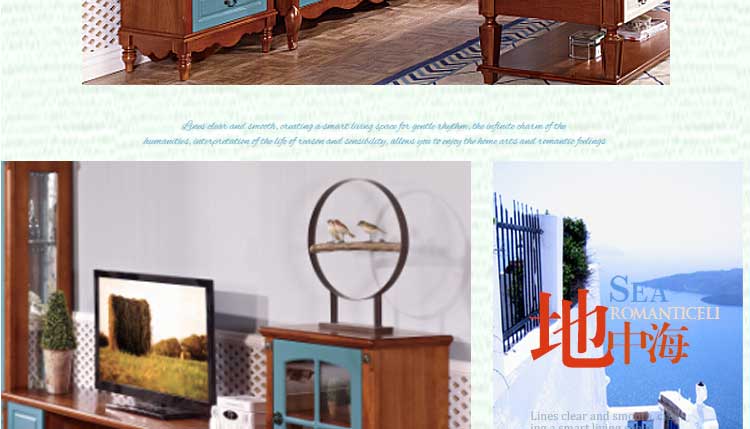 美式乡村电视柜酒柜边柜组合小户型客厅家具地中海电视机柜8T001