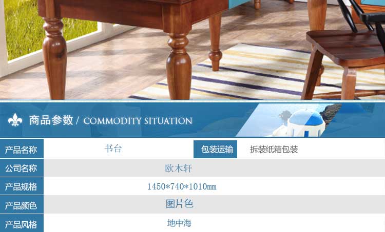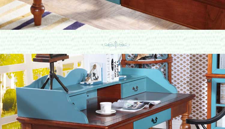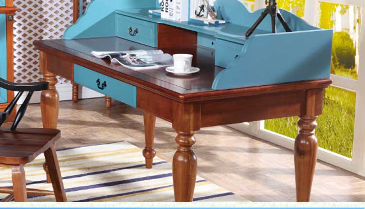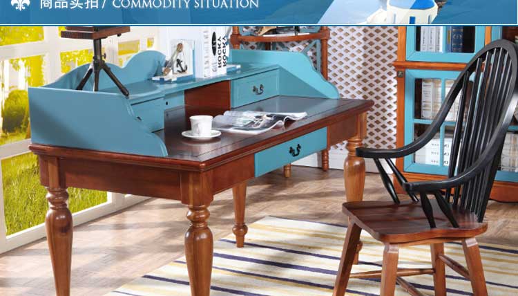 欧木轩地中海书桌实木书房家具书台美式写字台电脑桌8ST02