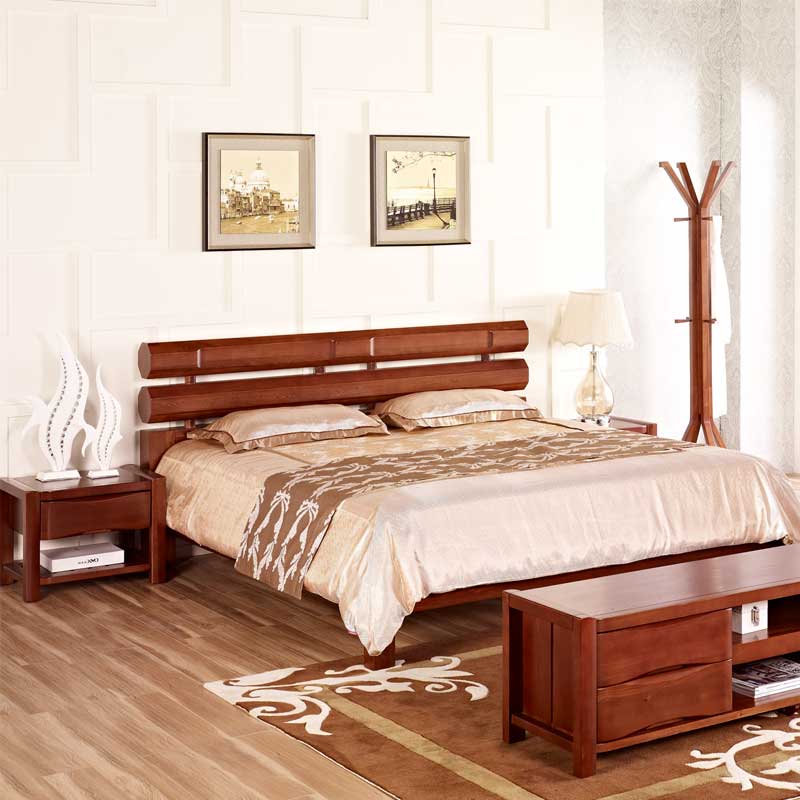 实木床1.8米双人床婚床 木质床 现代中式紫金榆木床 储物高箱床6A003