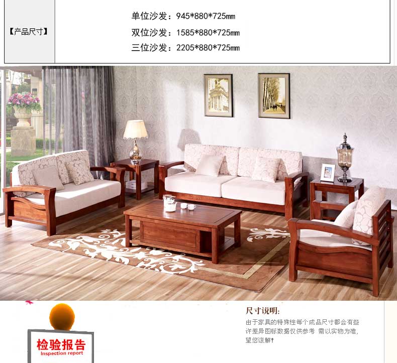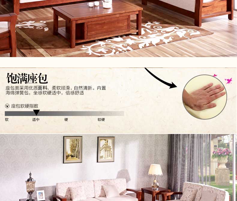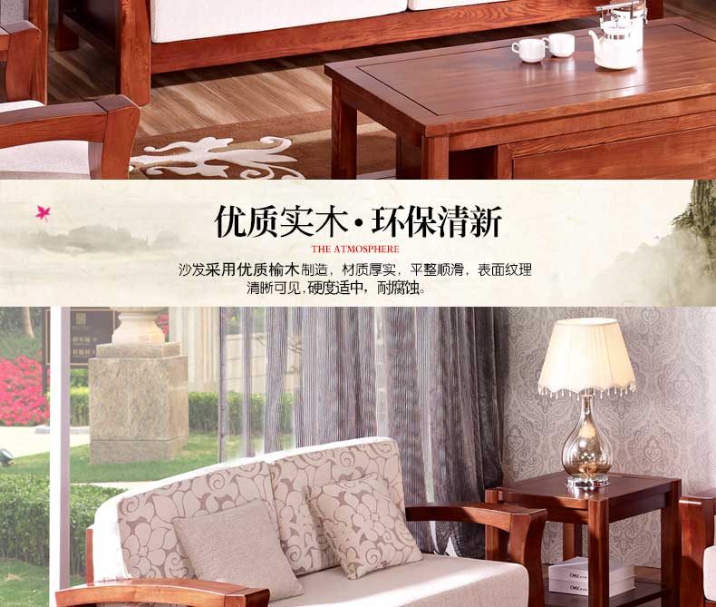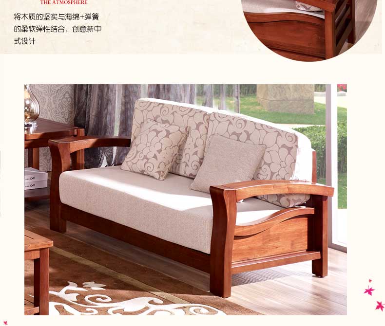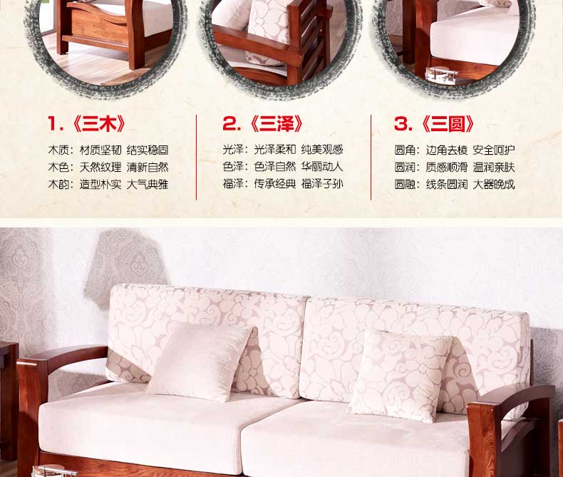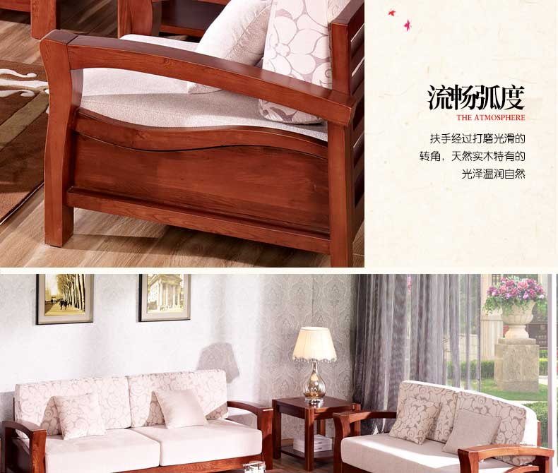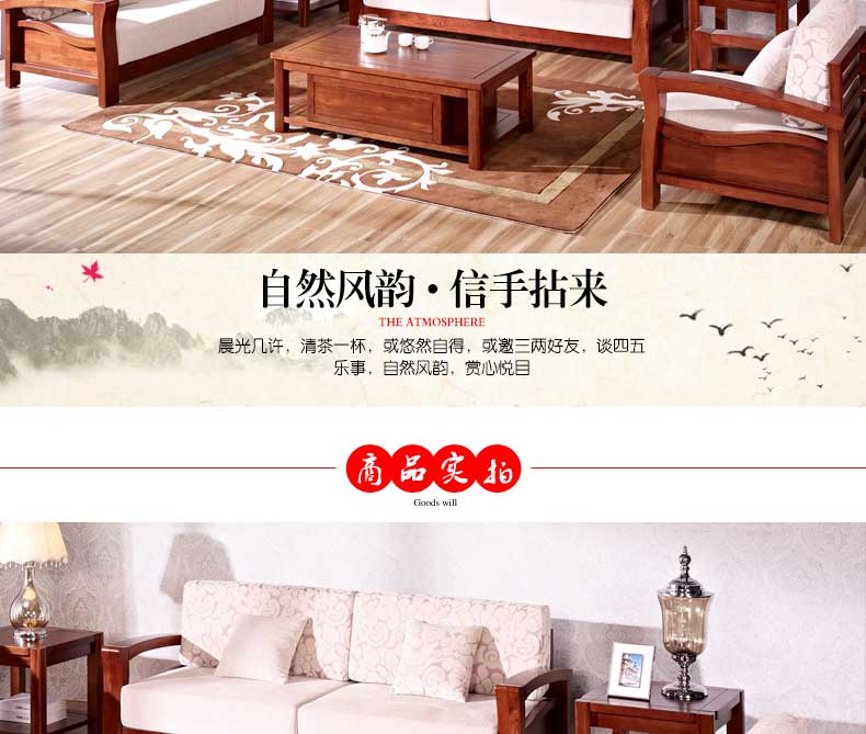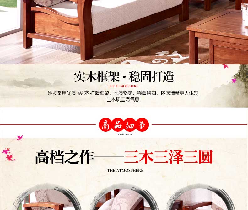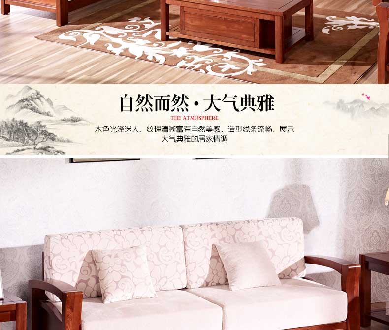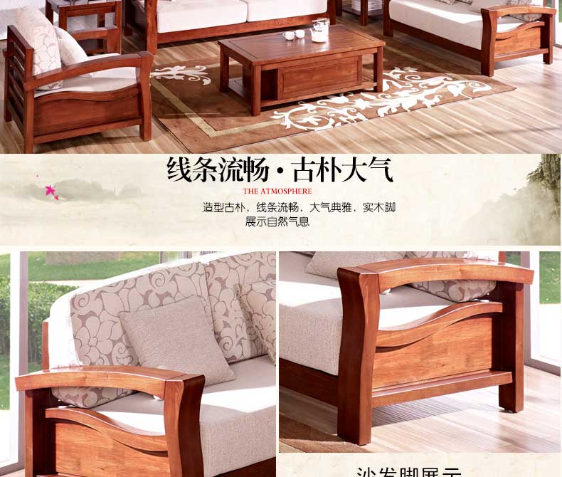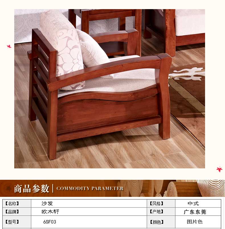 欧木轩实木中式风格仿古舒适1+2+3沙发客厅沙发三人位组合6SF03