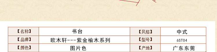 欧木轩实木书房书台中式风格储物书桌大小户型实用书台6ST04