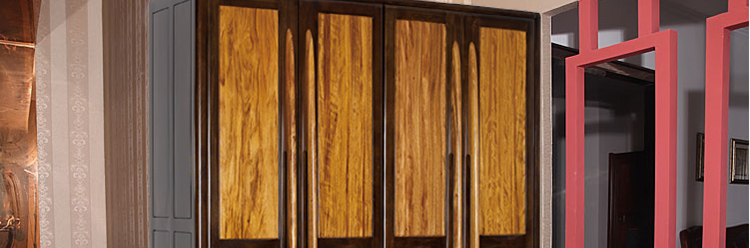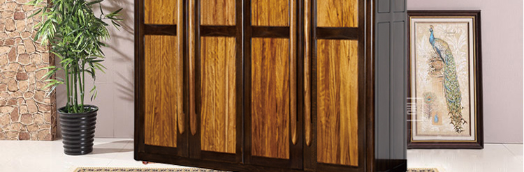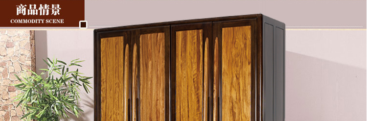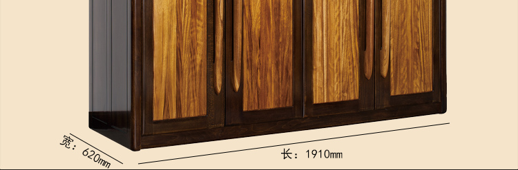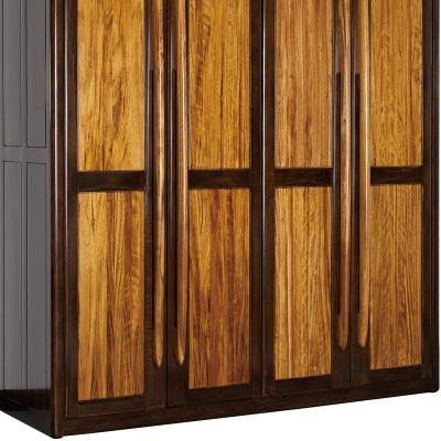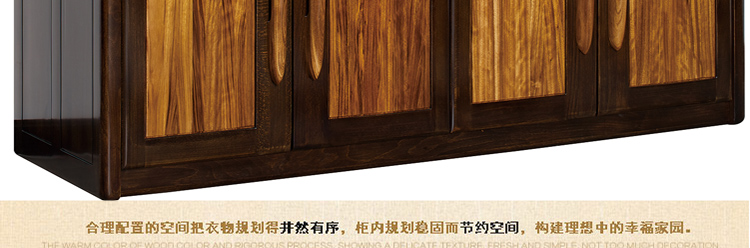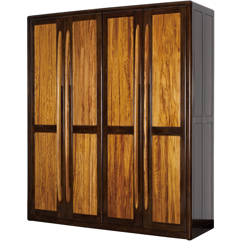 北欧风尚实木衣柜北欧风格中式四门大衣橱全木质胡桃木储物卧室家具D1903