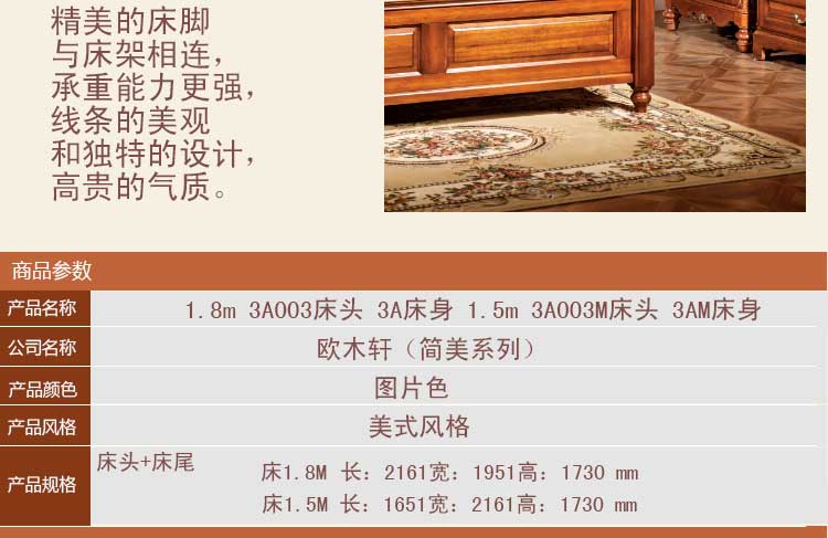 欧木轩新款卧室美式风格双人床1.8米1.5米大床3A003
