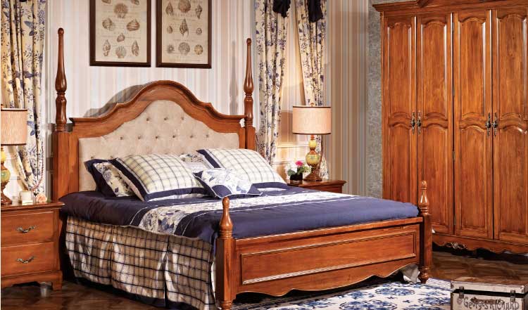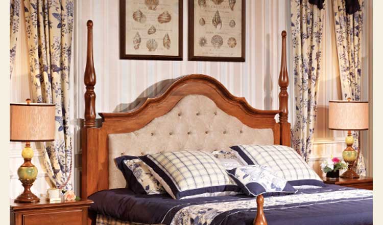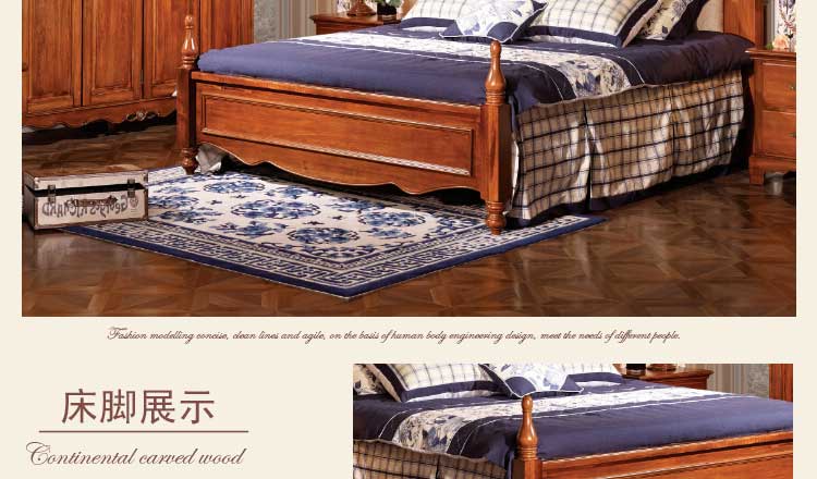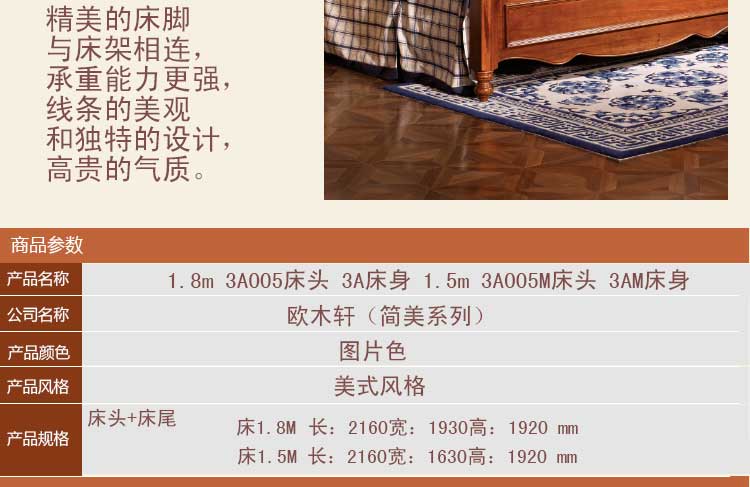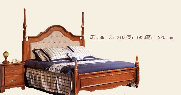欧木轩美式双人床1.5/1.8米简美式实木床1.8米 复古实木床3A005
