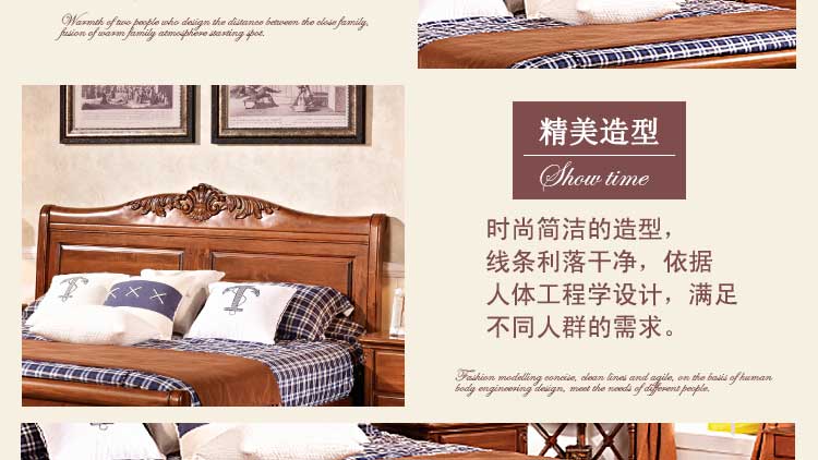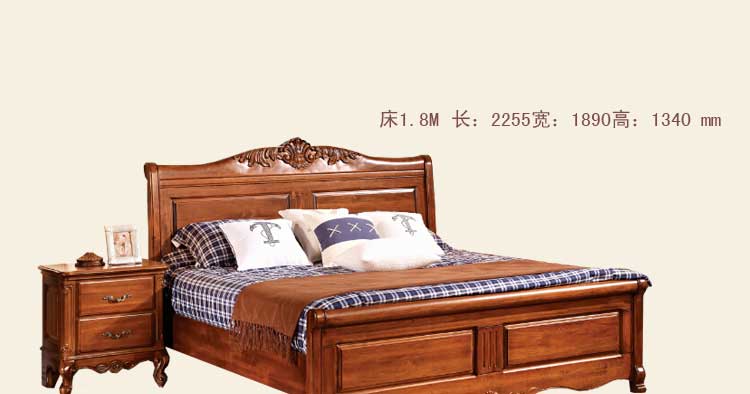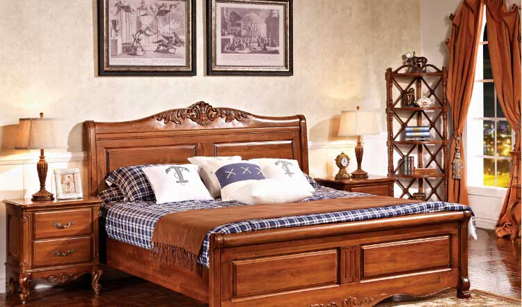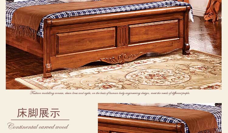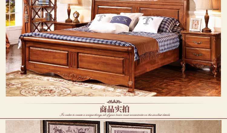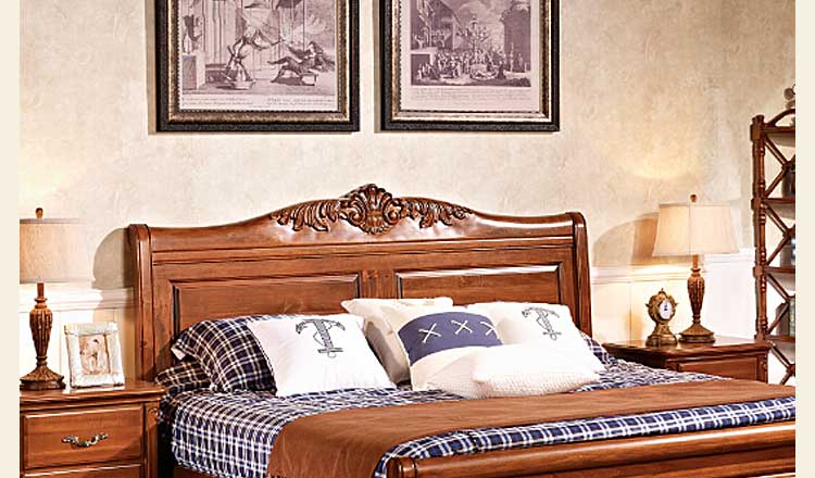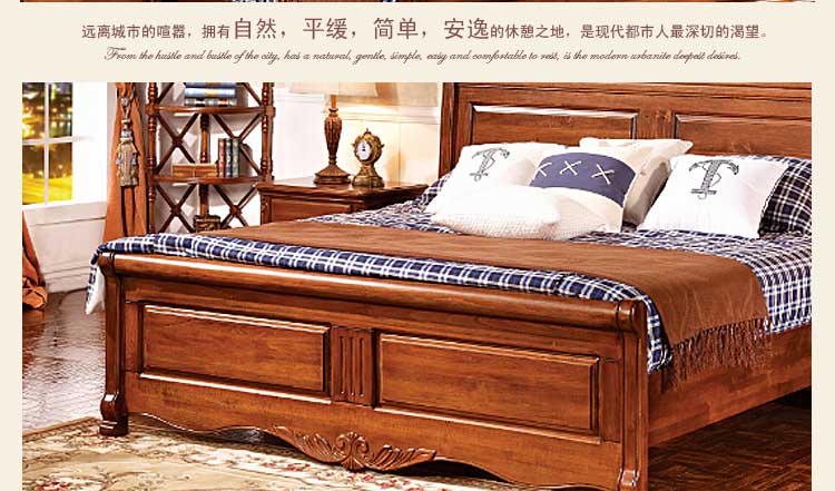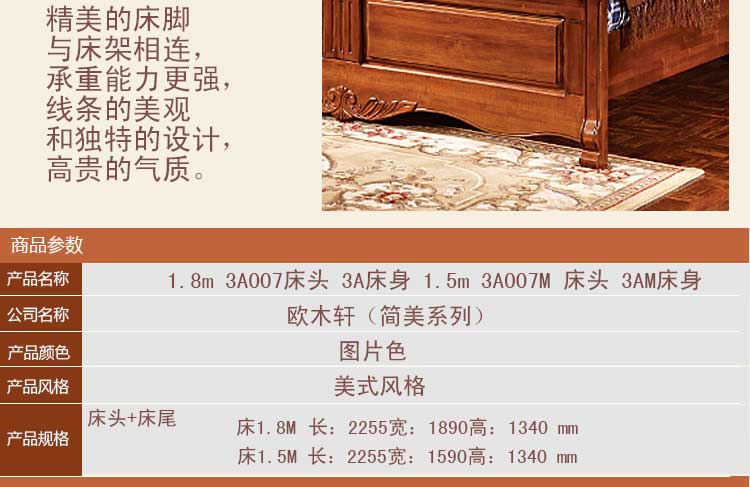 欧木轩美式简约风格全实木深色 木质复古双人床1.8/1.5美式古典床3A007