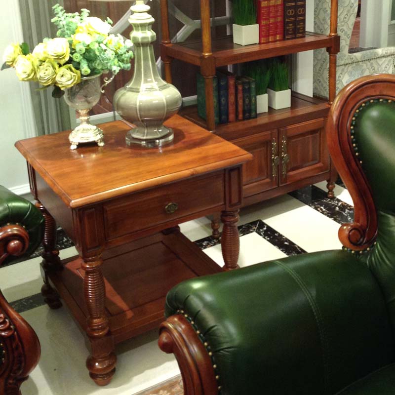 欧木轩美式古典实木住宅家具方形沙发边几角几美式储物小茶几咖啡桌3J001