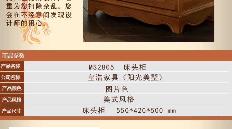 皇浩家具美式乡村风格卧室储藏床头柜板式归纳实用床头柜MS2805