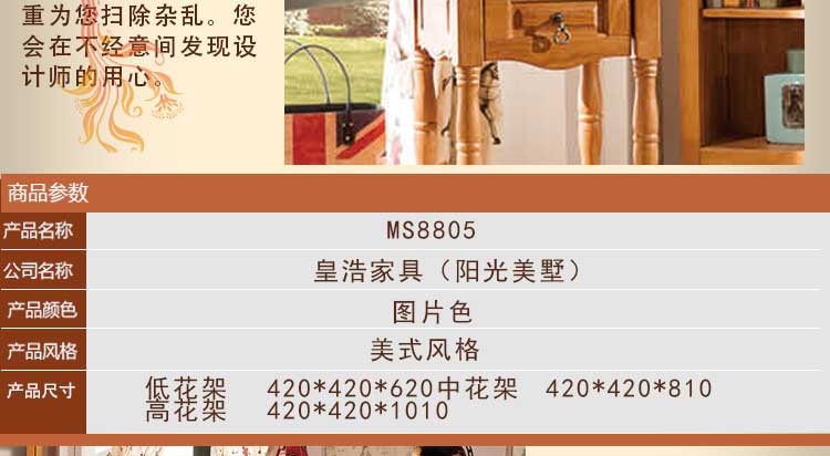 皇浩家具板式客厅摆放高低花架美式风格装饰架落地架MS8805