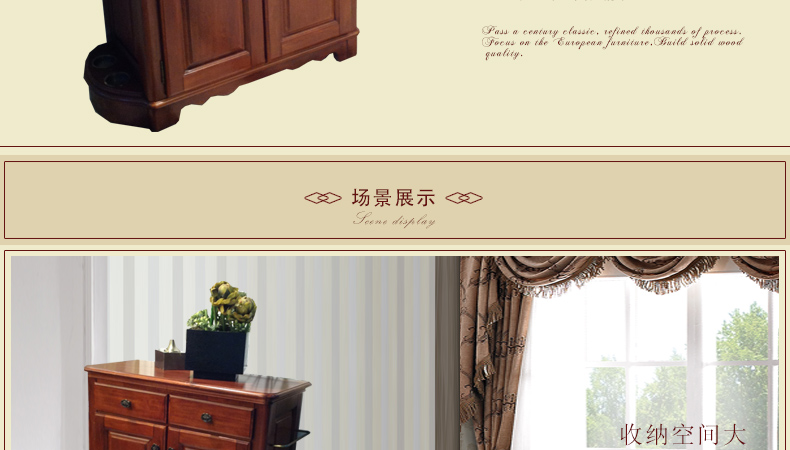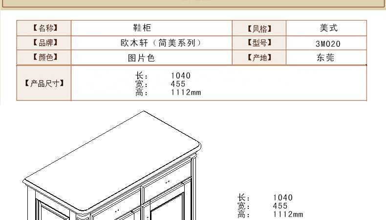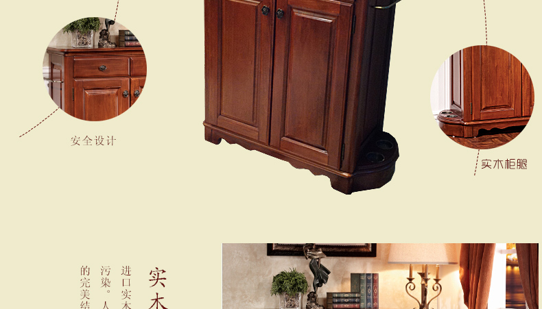 欧木轩简美鞋柜实木客厅复古鞋柜美式门厅柜玄关柜储物柜进门家具3M020 鞋柜