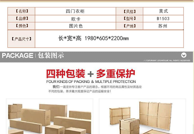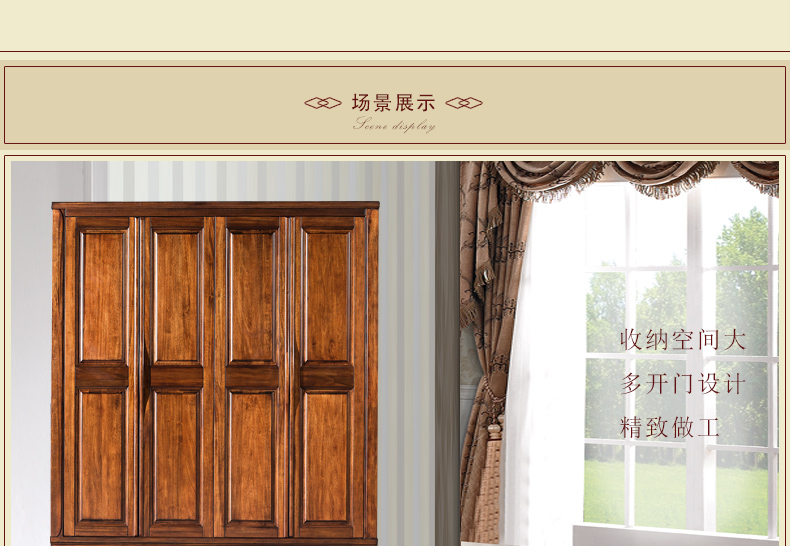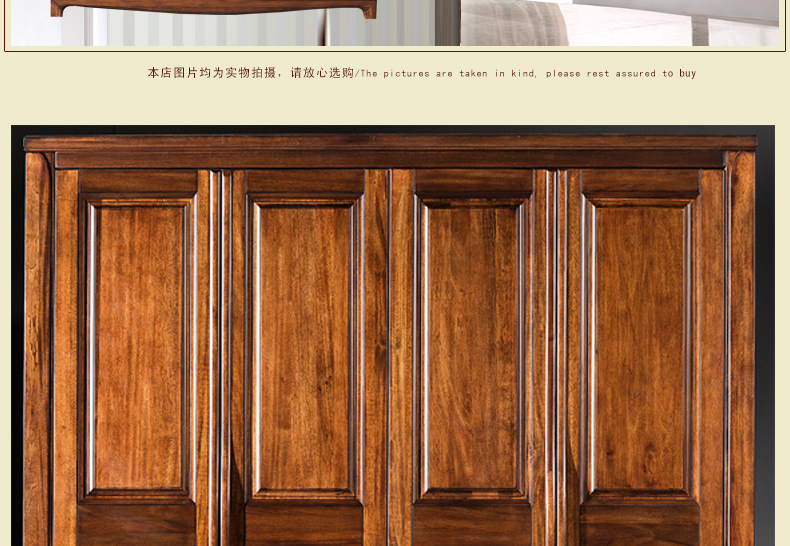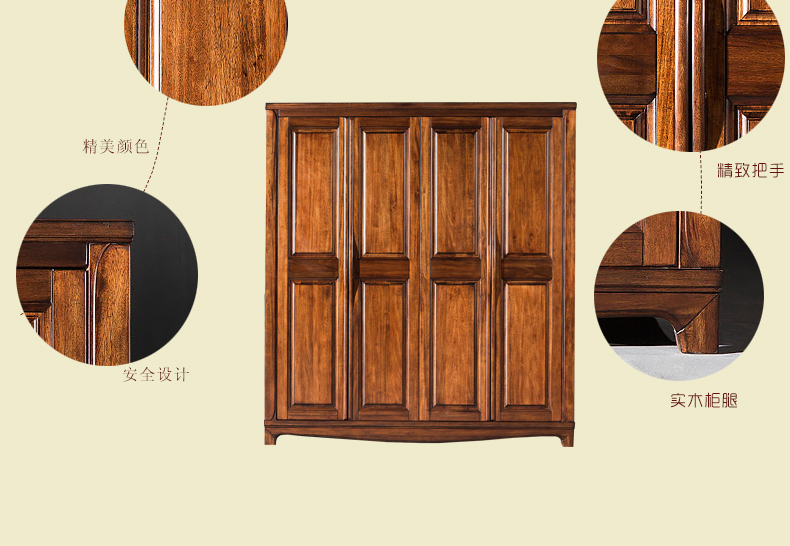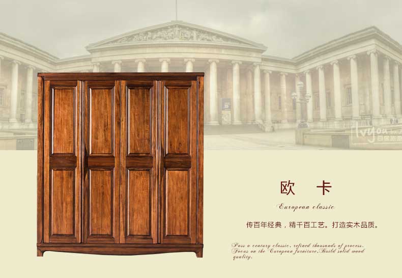 欧卡 四门衣柜美式新款大衣柜实木衣柜 B1503四门衣柜