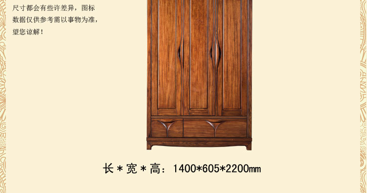 衣柜质量真好全实木的很结实,可以用很久了里面的空间很大,衣柜的尺寸挺准的放卧室正好的在网上买到这样合心意的家具特满意