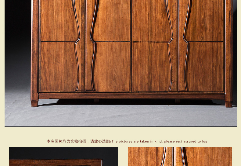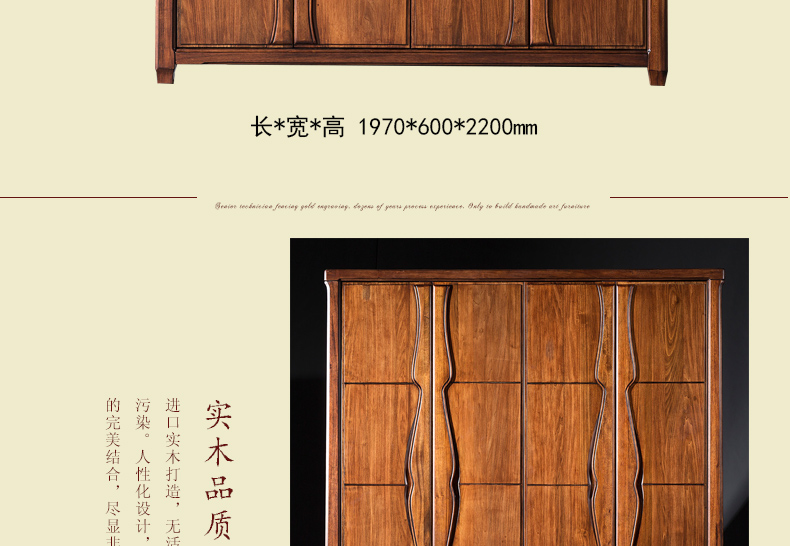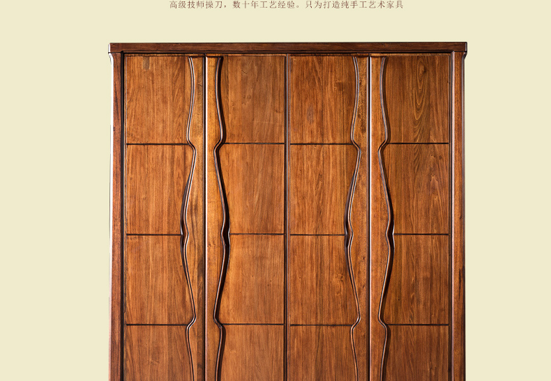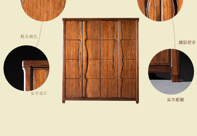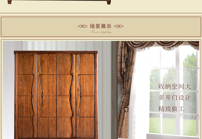 欧卡 卧室平开门衣柜美式新款大衣柜实木四门大衣柜 B1504四门衣柜