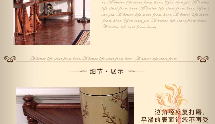 秉承灵感无限的美学创意思想,将艺术和传统文化融入家具设计,每一个细节都表现出家具的品味和自我的风格,折射出家具的文化和强烈个性。朴实简洁不华丽,没有繁多琐碎的花式设计,打造一个时尚完美的家。