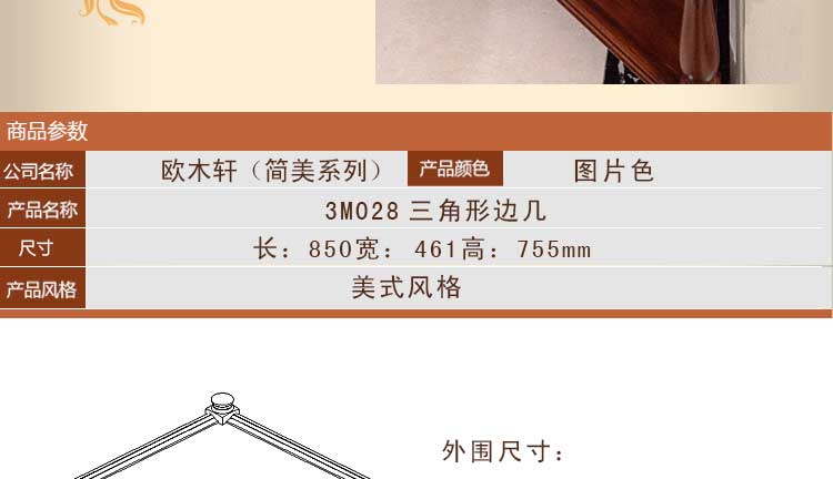 欧木轩新款厂家直销小茶几美式风格边几角几3M028三角形边几
