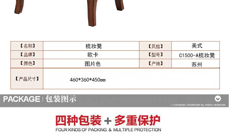 妆凳和家里的梳妆台挺搭配的,美式风格,用的材质也不错,结实环保,做工不错.