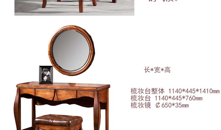 总 1140*445*1410mm 梳妆台 1140*445*760mm 梳妆镜 ¢650*35mm