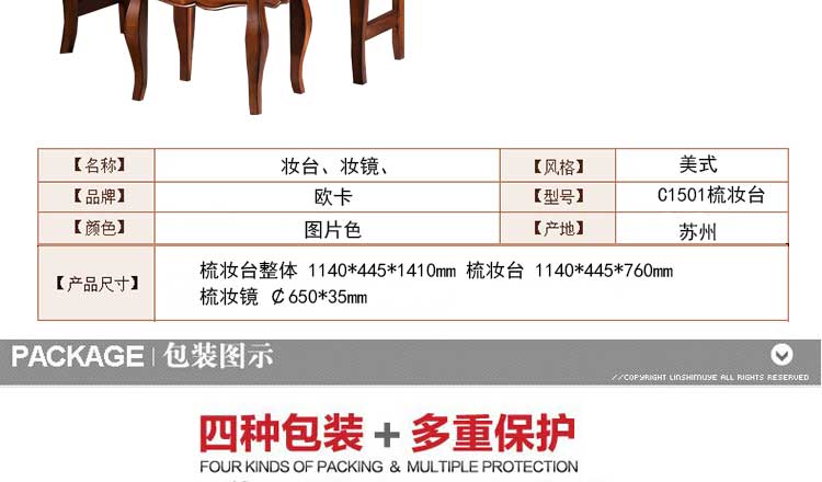 欧卡 卧室梳妆台梳妆镜美式木质妆台妆镜 C1501梳妆台
