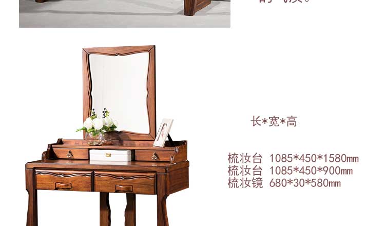 总 1085*450*1580mm 梳妆台 1085*450*900mm 梳妆镜 680*30*580mm