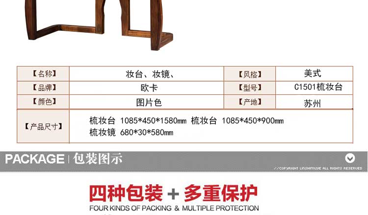 欧卡 美式新款妆台妆镜实木梳妆台梳妆镜 C1502梳妆台