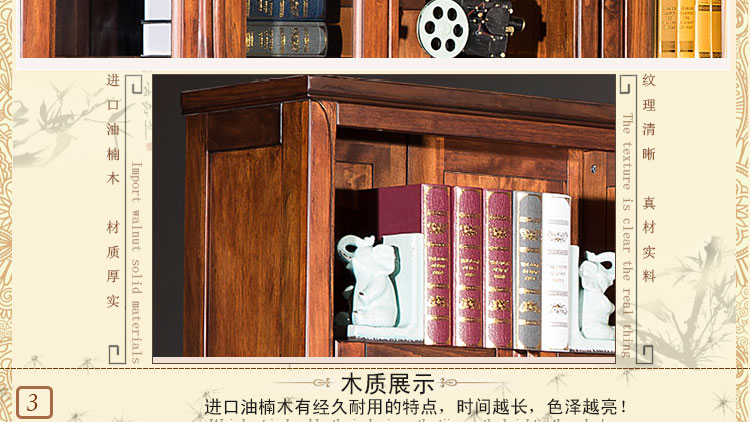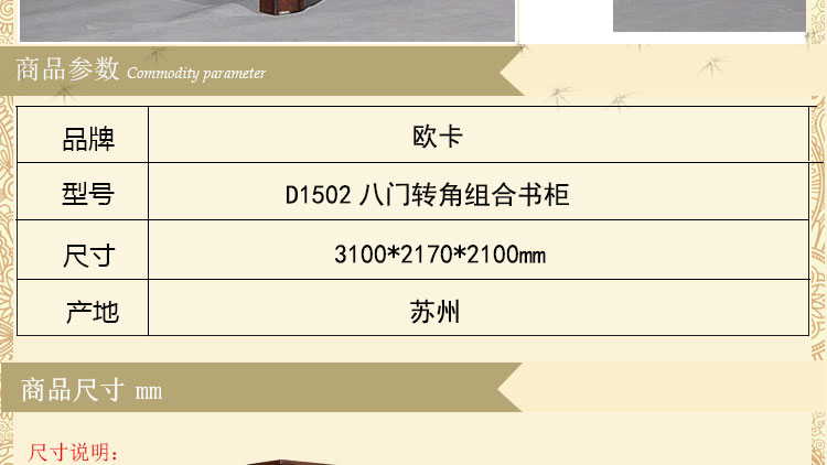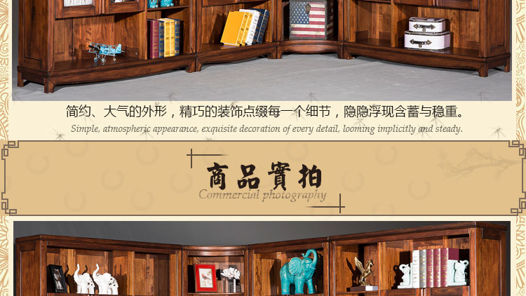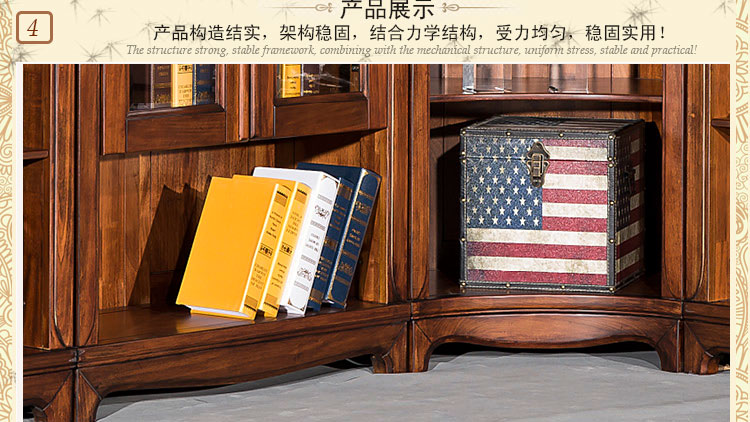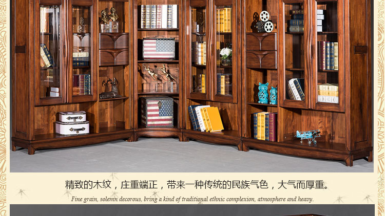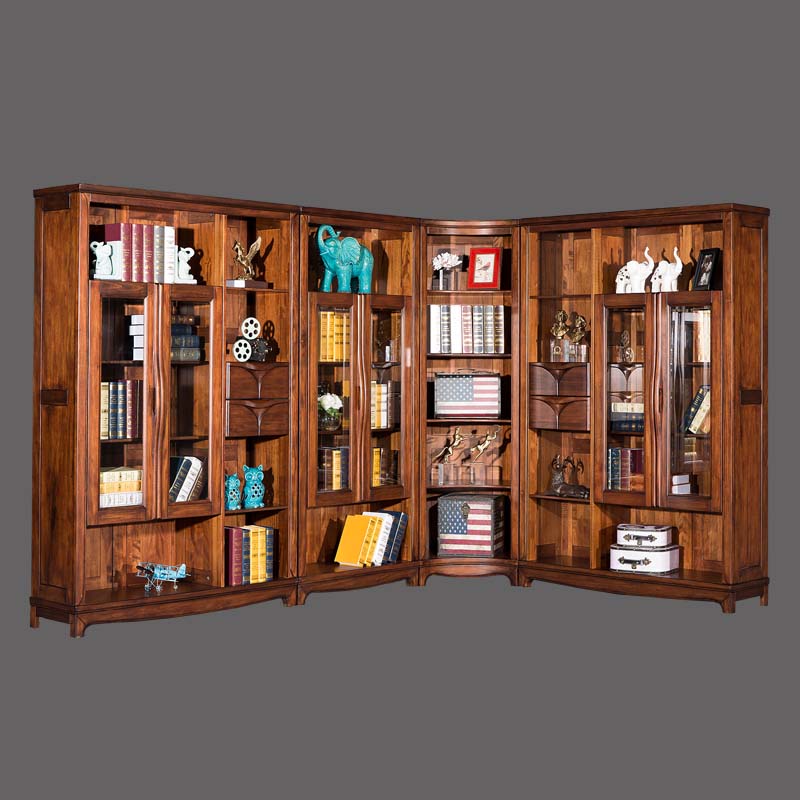欧卡 美式书柜转角书柜八门转角组合书柜实木书柜 D1502