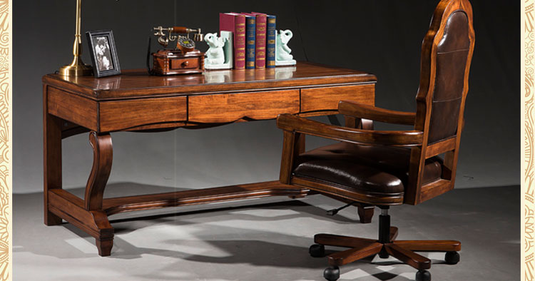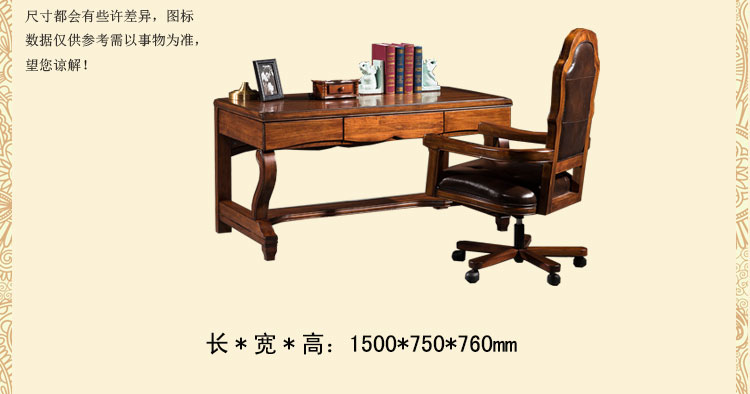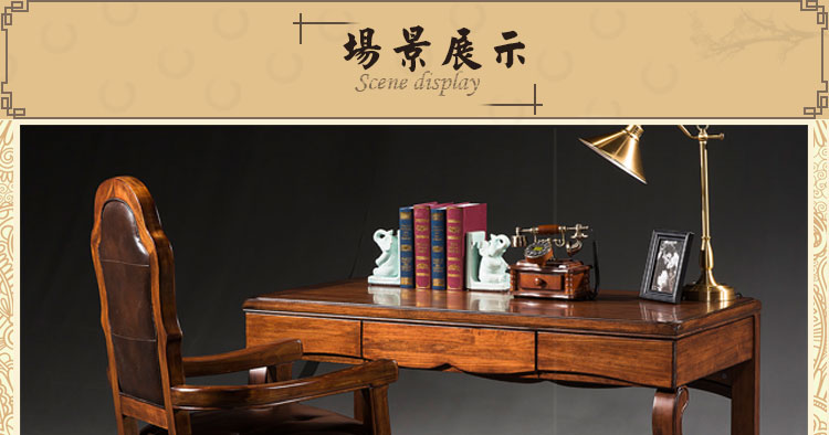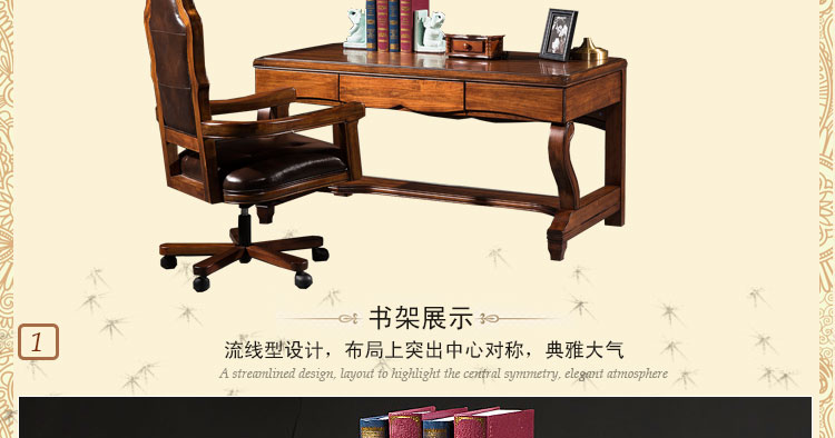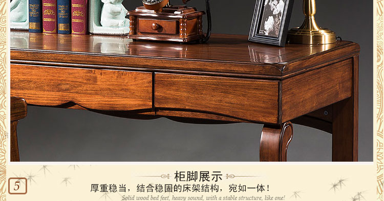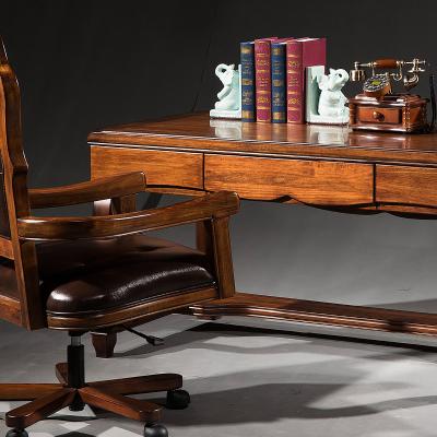 欧卡 书桌带书架组合全实木美式乡村简约做旧家具儿童写字台 E1502
