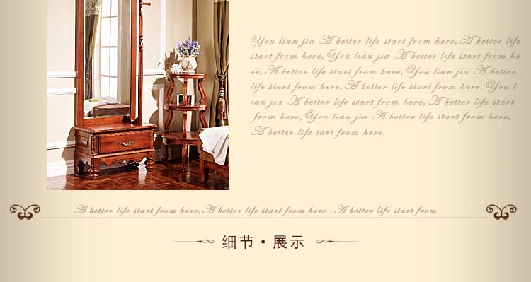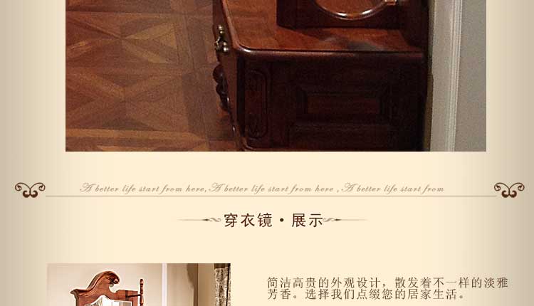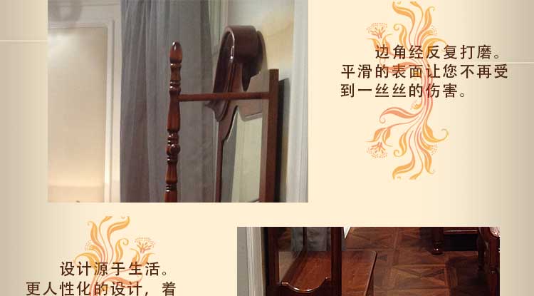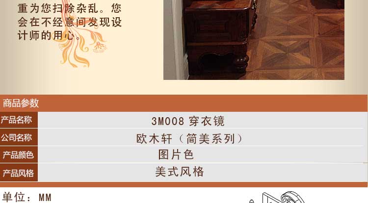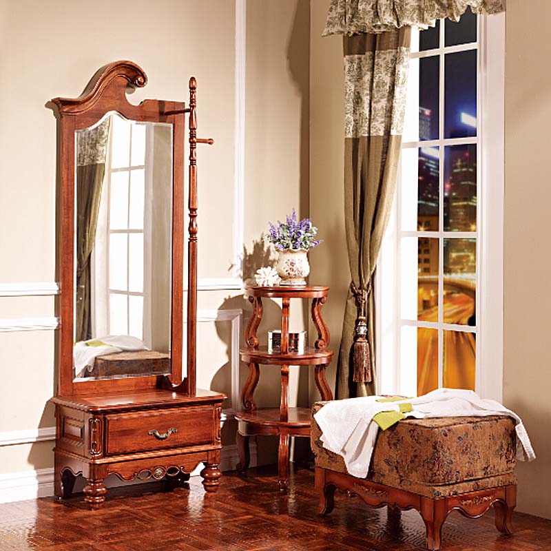 欧木轩美式实木穿衣镜 美式落地试衣镜全身镜乡村仿古化妆柜梳妆镜3M008 穿衣镜
