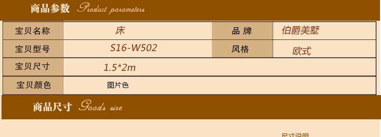 伯爵美墅 欧式床双人床新古典实木床欧式真皮1.8米公主床卧室婚床S16-W502