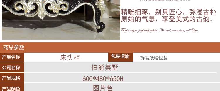 伯爵美墅 家具欧式床头柜新古典实木储物柜复古储物柜烤漆床头柜S16-W604